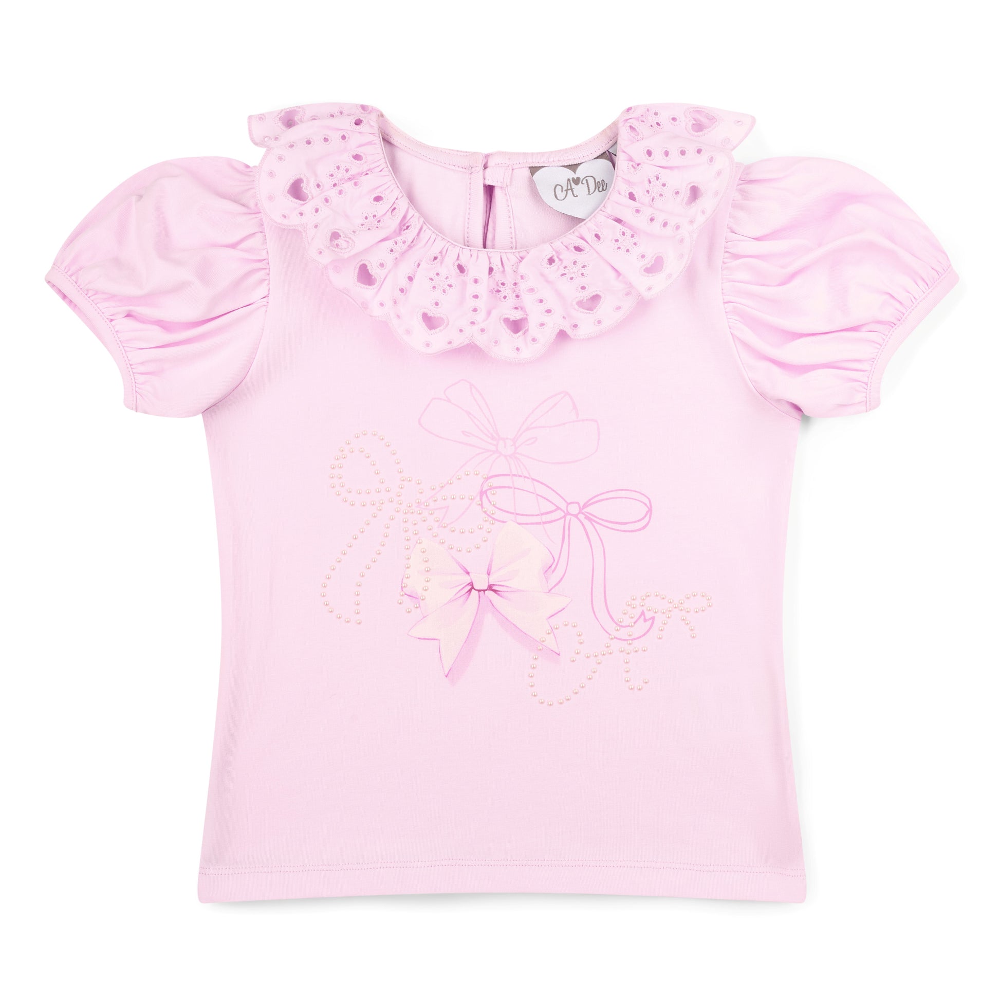 A Dee Bowtique Chic collection. The Riri skirt set comes with either a white or pink jersey top featuring a beautiful bow artwork with diamante details and puff sleeves. The tired ruffle skirt is made in a matching poplin bow print and has an elasticated waistband for a comfortable fit. The Riri bow print skirt set looks gorgeous on and very easy and comfortable to wear. Perfect summer outfit.