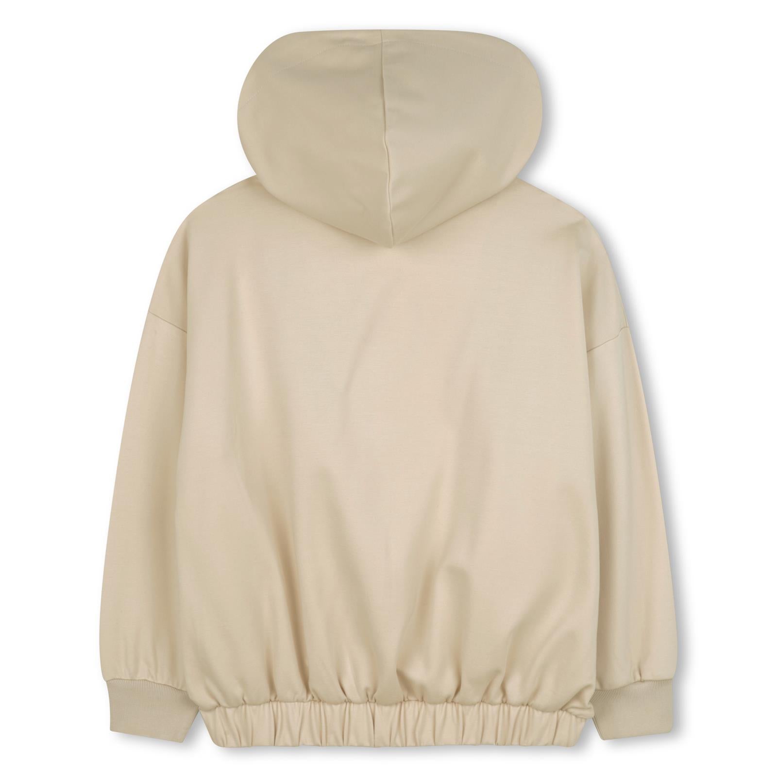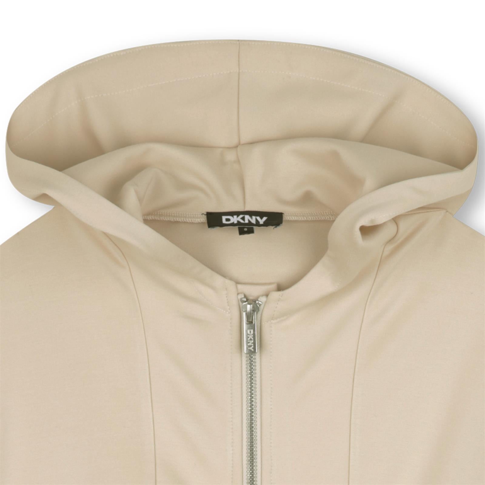 - Hooded cardigan in viscose polyamide elastane milano (62%VI 33%PA 5%EA). Zip fastening. Front pockets with printed DKNY braids.