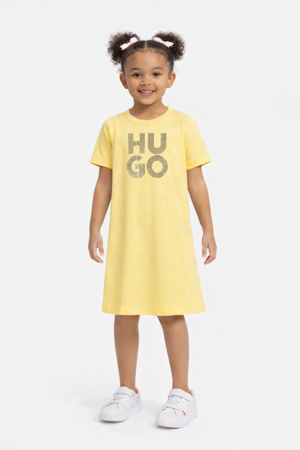 - Short sleeves jersey dress 100% cotton from organic farming, rib on collar, studs "HUGO" logo in the front.
