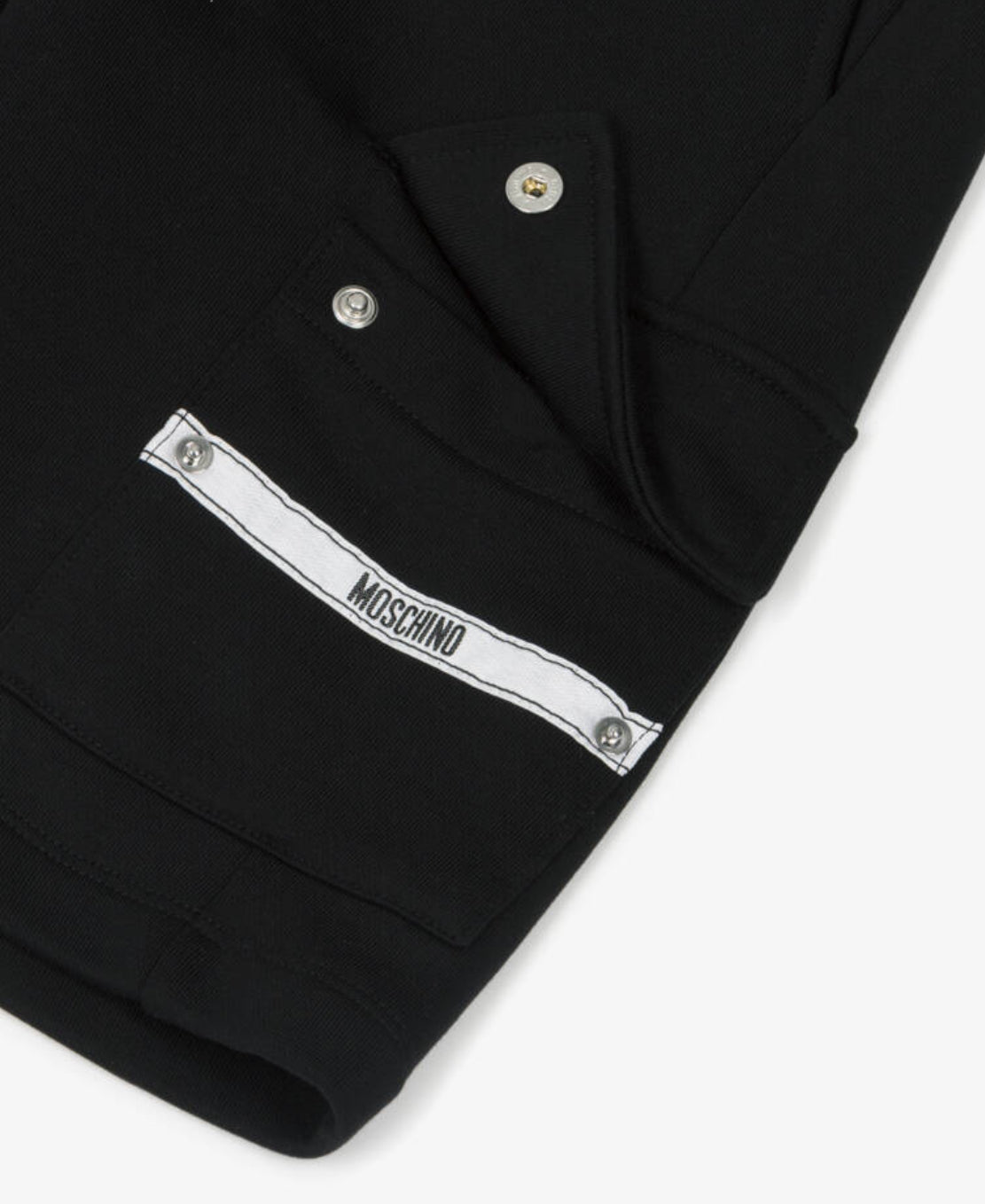 Boys white cotton Mini-me T-shirt by Moschino, with the chest pocket trimmed in logo taping and silver rivets for an immediately recognisable look. This short-sleeved tee is made in soft jersey for comfort, with a classic crew neckline.