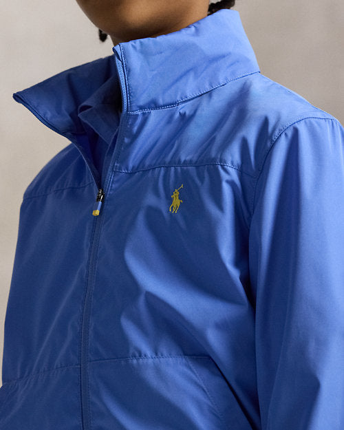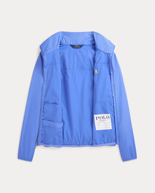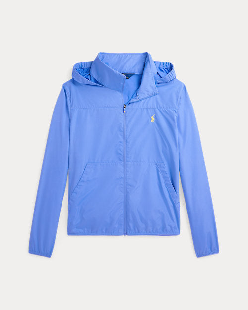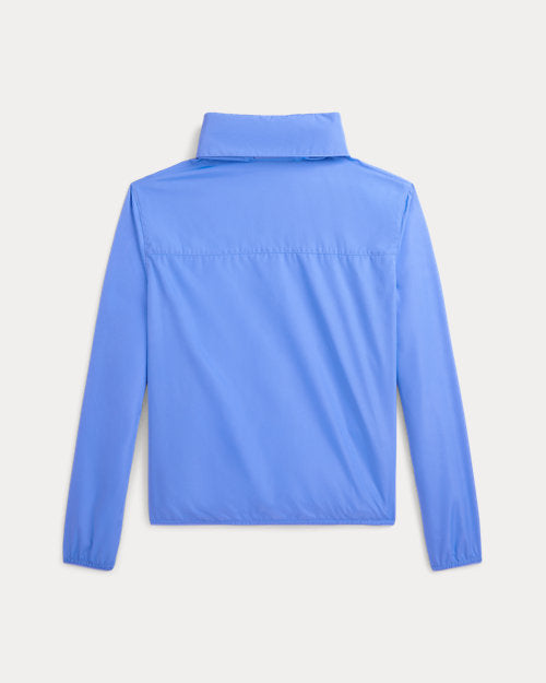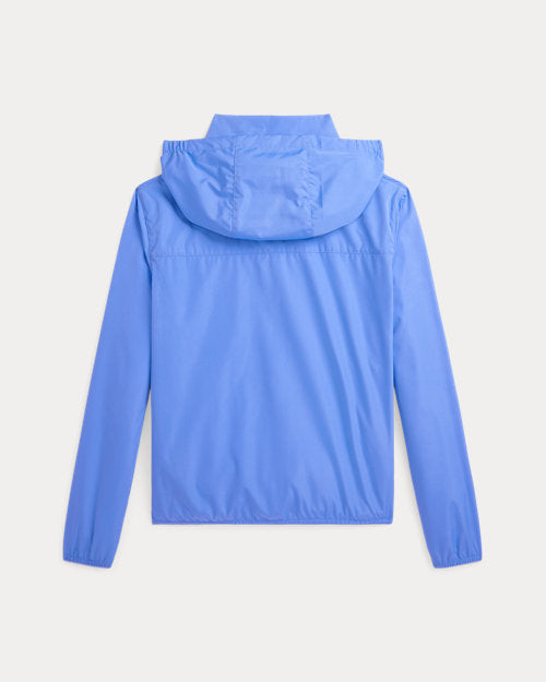 - Long sleeves with elasticated cuffs. Split kangaroo pocket. Interior right waist pocket. Packs into the interior pocket, which features a carrying loop.