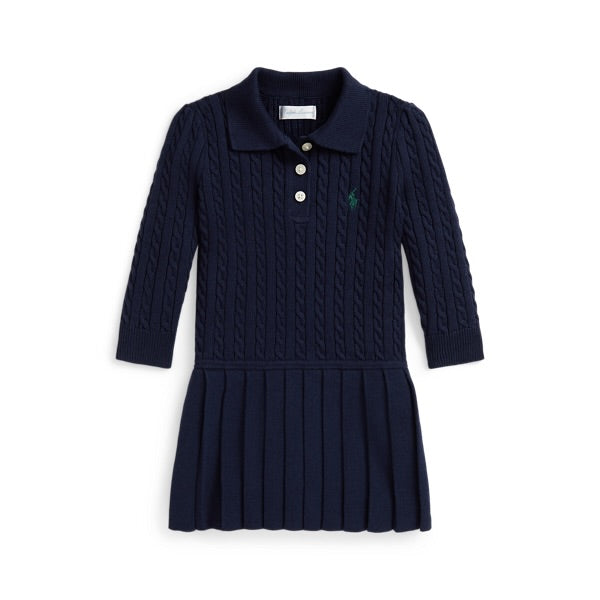 RALPH LAUREN GIRLS CABLE KNIT NAVY DRESS